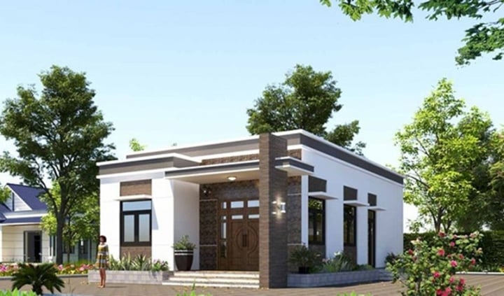 Nhà cấp 4 mái bằng tối giản có sân vườn rộng rãi, đem lại không gian sống nhẹ nhàng nhưng vẫn đảm bảo tiện nghi. (Ảnh: Noithattugia)