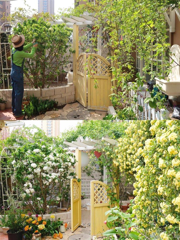 Nhìn từ trên cao, giàn cây chẳng khác nào một thác hoa đang đổ xuống khu vườn nhỏ. Mỗi sáng thức giấc, việc đầu tiên chủ nhân khu vườn này làm chính là mở toang khung cửa sổ để ngắm nhìn giàn hoa hồng leo mân côi khoe sắc trong những tia nắng sớm. Hít hà mùi hương thoang thoảng nhẹ dịu của hoa cùng với bầu không khí trong lành là cách nạp đầy năng lượng cho một ngày mới.