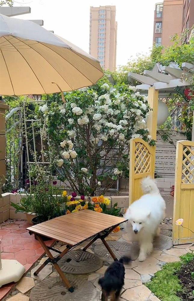 Thật không quá khi ví khu sân vườn này đẹp như trong truyện cổ tích. Mảnh sân nhỏ rộng khoảng 60m² này thuộc sở hữu của gia đình chị Lệ ở Quảng Tây (Trung Quốc). Bên trong vườn có 1 căn nhà gỗ, 2 chú cún cưng và 4 mùa hoa nở. Khu vườn mang đầy hương vị cuộc sống, đem niềm hạnh phúc tới bất kỳ ai đặt chân đến đây.