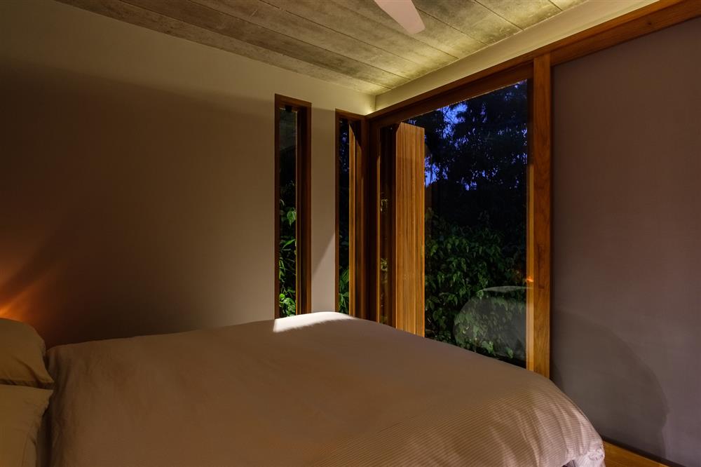 Ngôi nhà với các phòng đầy đủ ánh sáng tự nhiên nhưng vẫn được khéo léo bảo vệ khỏi ánh nắng trực tiếp suốt cả ngày, đặc biệt là ánh nắng mạnh vào buổi chiều. Các phòng ngủ nhận được ánh nắng ban mai dịu nhẹ, kèm các tiện nghi sinh hoạt, tăng cường sự kết nối với thảm thực vật từ bên ngoài.