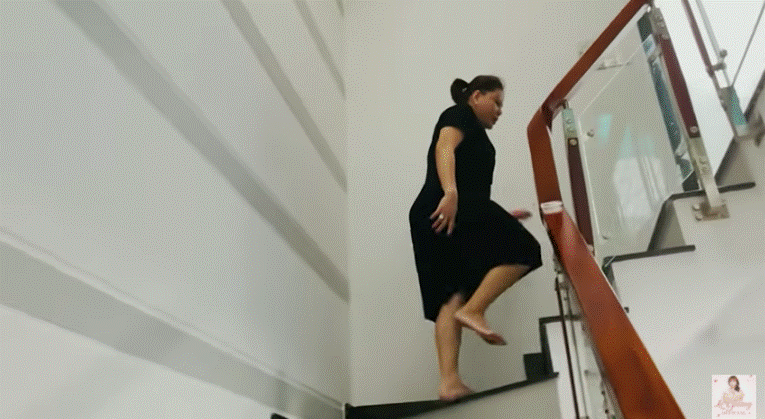 Nữ nghệ sĩ sử dụng cầu thang bộ để tập luyện thể dục dùng hằng ngày. (Ảnh chụp màn hình.