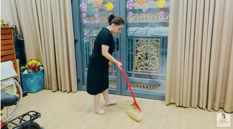 Những lúc rảnh rỗi, nghệ sĩ Lê Giang dọn dẹp nơi ở của mình...