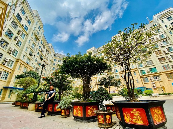 Là người yêu hoa, nên khoảng không gian trước cửa nhà được nam diễn viên "Cô gái nhà người ta" trồng nhiều loại khác nhau. Để làm "mành chắn nắng" tự nhiên, nghệ sĩ Quang Tèo đã trồng hai cây hoa giấy trước cửa nhà. Khoảng sân vườn nhỏ trước căn hộ được nam nghệ sĩ tận dụng trồng hoa mẫu đơn, hoa hồng.