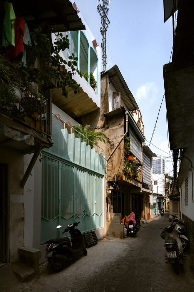 Hai phía của căn nhà nhìn từ con hẻm nhỏ giữa lòng thành phố