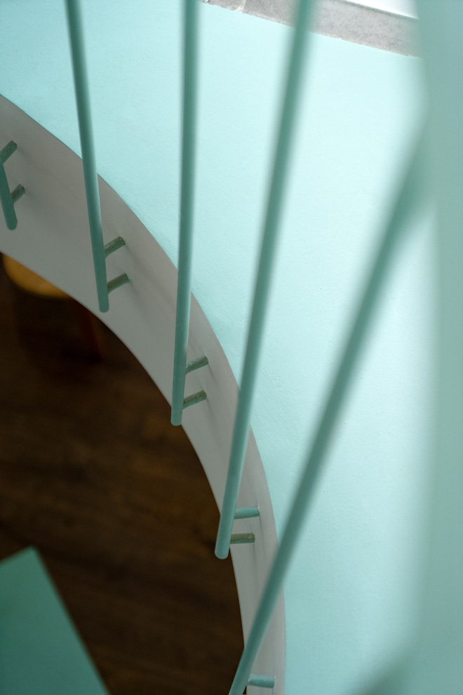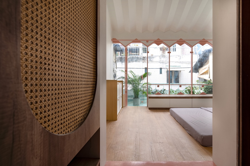 Tông màu pastel chính là sắc chủ đạo của "Lồng Hẻm", được sử dụng cho phần lớn thiết kế trong ngôi nhà. Sự xuất hiện của gam Pastel trên bất kỳ không gian nào của căn nhà cũng đều đem đến hình ảnh tinh khiết và nhẹ nhàng. Chia đều các khoảng không gian với hai tông màu đối lập hồng phấn và xanh bạc hà, tổng thể căn nhà trở nên tươi mới và trẻ trung hơn rất nhiều.