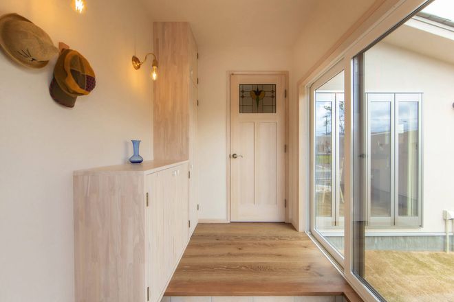 Đi vào bên trong là cửa ra vào, có tủ được lắp 1 bên tường, thiết kế hình chữ L kết hợp tủ giày và khu vực treo quần áo nên không phải lo lắng về vấn đề cất giữ. Bên kia có cửa sổ cao từ trần đến sàn, lúc đi ngang qua cửa ra vào có thể nhìn thấy cảnh vật trong sân, tâm trạng bỗng nhiên tươi tỉnh hẳn lên.