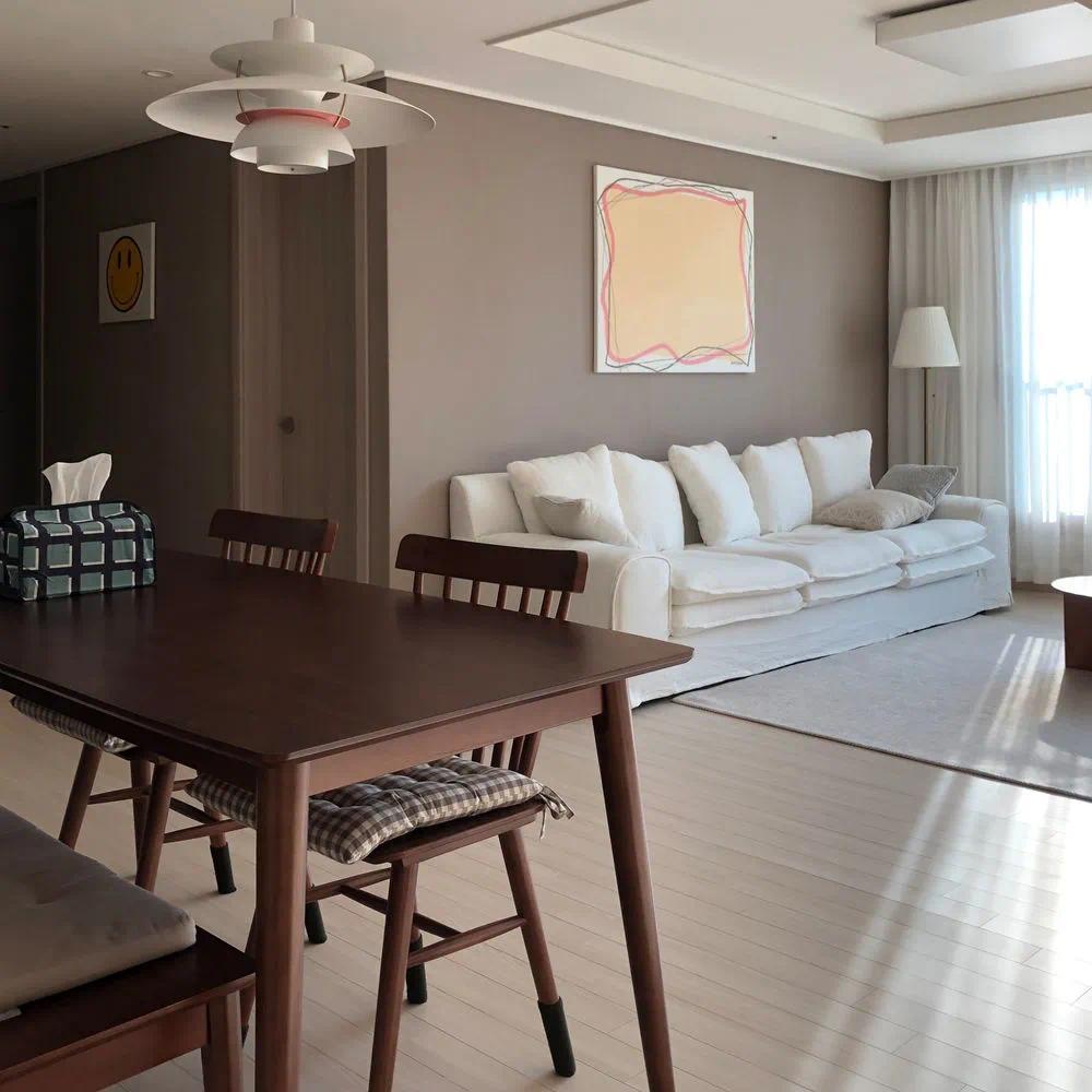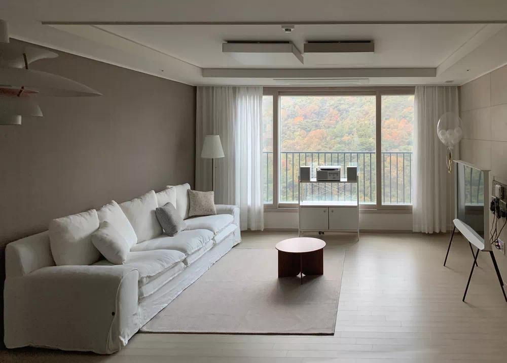 Trang trí của ngôi nhà rất đơn giản, với sàn gỗ trên mặt đất và ghế sofa màu trắng mang lại khung cảnh tươi mát và ấm áp. Không gian phòng khách tuy không lớn nhưng lựa chọn đa phần là nội thất có thể di chuyển được để thỉnh thoảng bạn có thể bài trí lại căn nhà theo tâm trạng của chủ nhân, trông rất tươi mới!