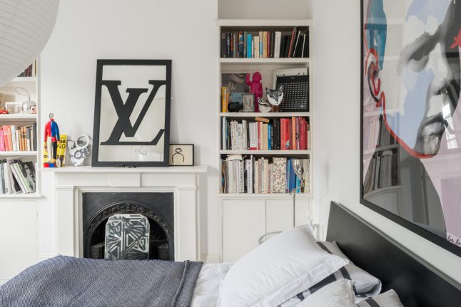 Phía đầu giường gia chủ treo một tấm ảnh lớn. Xung quanh tường là rất nhiều các loại sách, được sắp xếp ngăn nắp trên kệ tủ