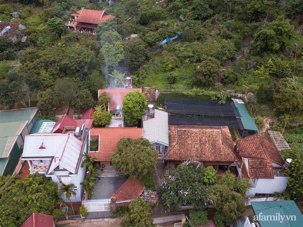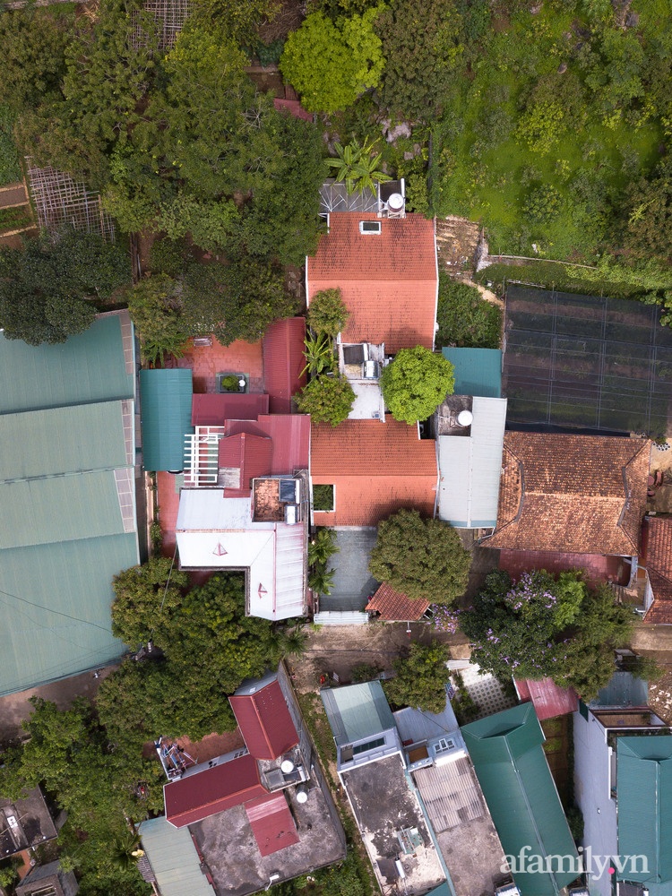 Căn nhà mái ngói đỏ nổi bật khi nhìn từ trên cao.