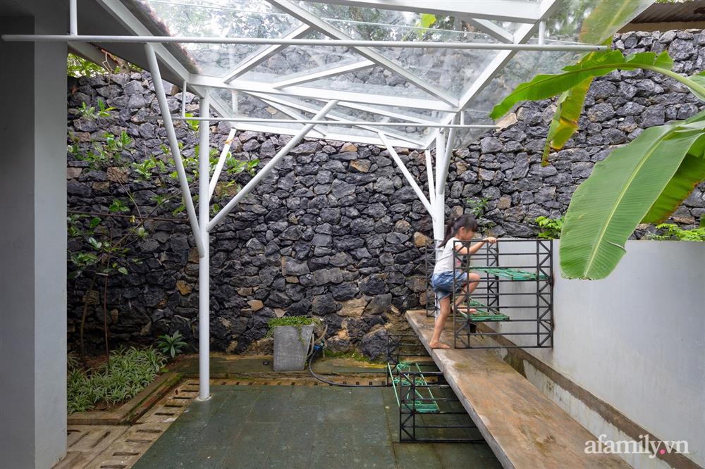 Sân chơi phía sau cùng, giáp với đồi đá nhỏ dành riêng cho những đứa con và chủ nhà mỗi khi cần yên tĩnh đọc những cuốn sách mình yêu thích.