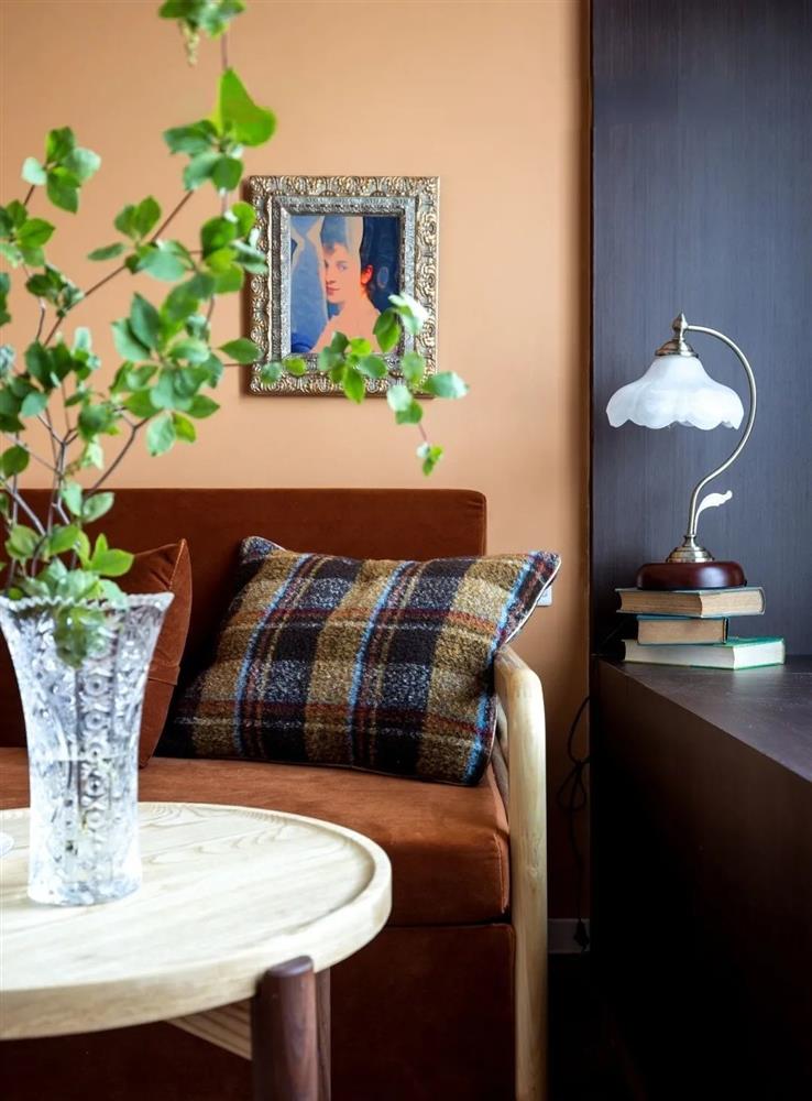 Chiếc ghế sofa màu bí ngô, lọ hoa cắm cành lá chuông mới cắt và chiếc đèn bàn nhỏ quen thuộc hình hoa nhài đều là những cơ hội để mọi người thư giãn nhanh chóng.