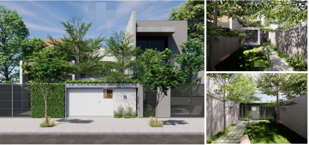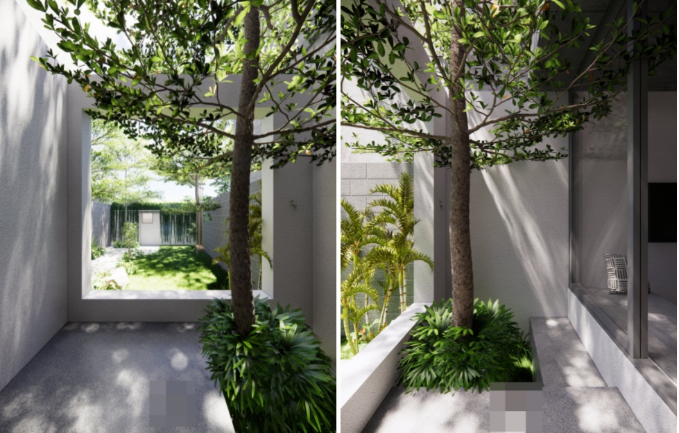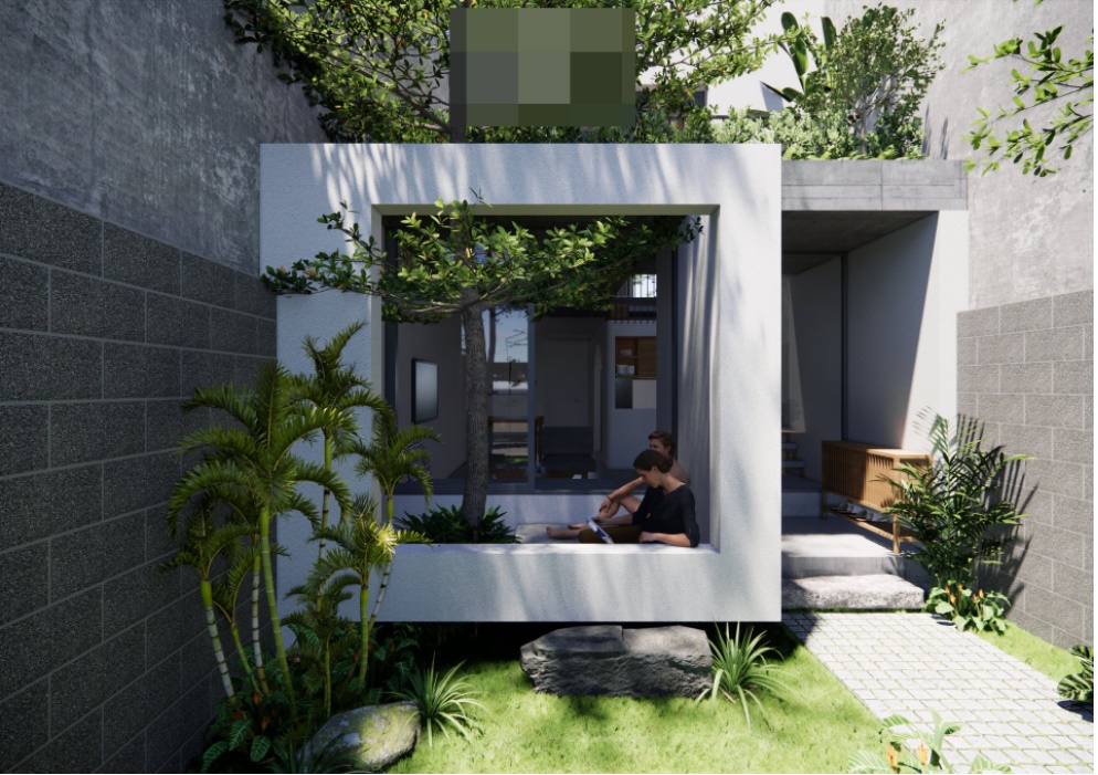 Kiến trúc sư không xây hết phần đất mà chừa lại nhiều khoảng để trồng cây. "Ngày trước, mọi người thường có quan điểm phải xây nhà rộng, to, hết phần đất để phục vụ chuyện ở. Tuy nhiên, ngày nay bên cạnh không gian ở, mọi người đã chú trọng đến sân vườn và cảnh quan", kiến trúc sư Minh Tín nói.