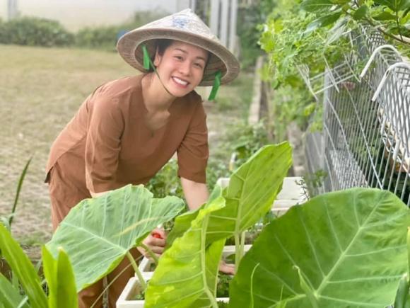Mới đây, trên trang cá nhân của mình, Nhật Kim Anh đăng ảnh chăm sóc vườn rau của mình và chia sẻ: "Chị nông dân trong mùa giãn cách!".