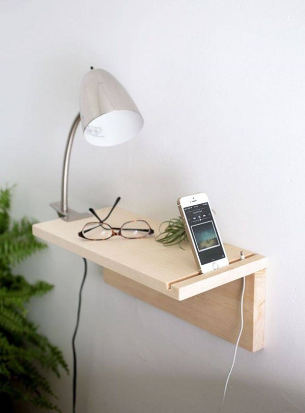 Có một phòng ngủ nhỏ không có nghĩa là bạn sẽ bỏ qua một chiếc bàn đầu giường. Gắn kệ là một thủ thuật thông minh có tác dụng hoàn hảo cho những không gian nhỏ hẹp, tiết kiệm diện tích, thêm nhiều chỗ trống đặt những thứ cần thiết trước khi đi ngủ của bạn.