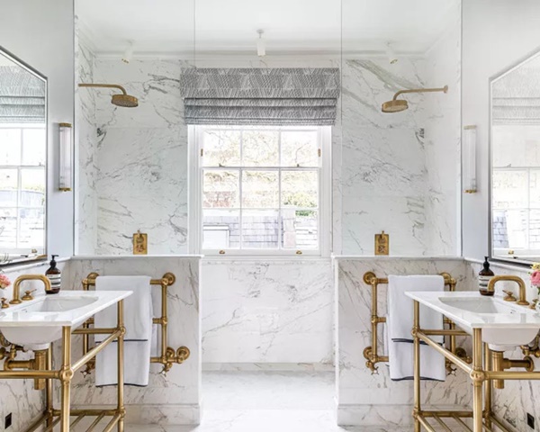 9. Vẻ đẹp ấn tượng cùng những đường nét hoa văn thu hút thị giác luôn là yếu tố giúp cho đá cẩm thạch được nhiều gia đình ưa chuộng sử dụng. Và việc sử dụng đá cẩm thạch bên trong nhà tắm cũng nằm trong kế hoạch thiết kế của nhiều gia đình. Một điều bạn không thể phủ nhận là chỉ cần có sự xuất hiện của đá cẩm thạch là không gian phòng tắm trông trang nhã, sang trọng hơn rất nhiều.