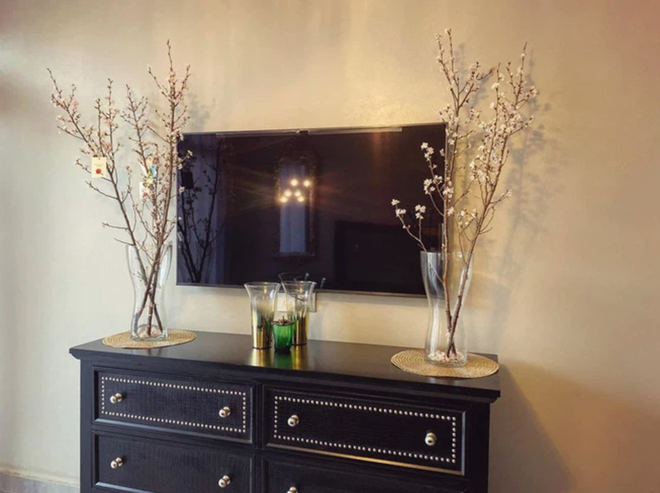 Có thể thấy phòng ngủ của Minh Hà trông rất chẳng khác gì khách sạn với đồ nội thất sang chảnh ton sur ton. Căn phòng này mang phong cách tân cổ điển với tone màu chủ đạo là xanh xám. Các món đồ decor đều rất nhẹ nhàng và ăn nhập với tổng thể chung. Chỉ cần ở trong phòng thôi mà Minh Hà cũng đã có kha khá ảnh sống ảo rồi đấy!