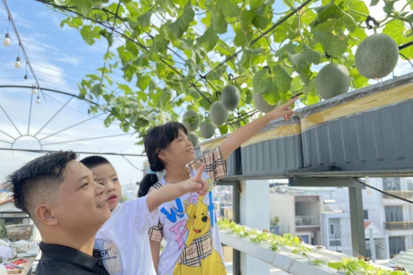 Với anh, thành quả từ quá trình làm vườn sân thượng không chỉ là những mẻ rau trái xanh tốt, đầy ắp mà còn mang lại nguồn năng lượng dồi dào cho cả gia đình. Các con anh cũng có chỗ vui chơi, khám phá thiên nhiên thú vị giữa lòng thành phố.