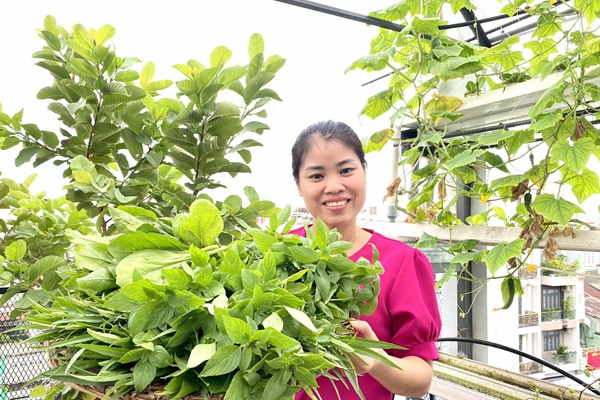Từ khi có khu vườn xanh mát trên cao, gia đình anh vừa chủ động được nguồn thực phẩm sạch hàng ngày, vừa tiết kiệm được vài triệu tiền sinh hoạt vì hiếm khi phải đi chợ mua rau, trái cây.