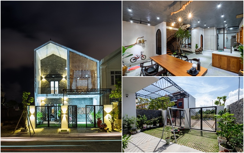 Ngôi nhà với vẻ đẹp nổi bật nhờ sự kết hợp nhiều vật liệu khác nhau.