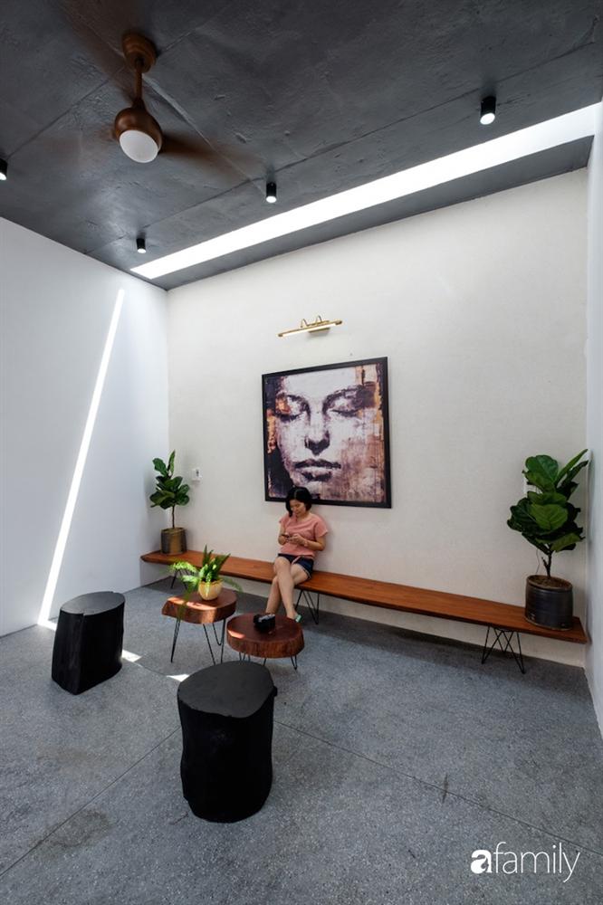Khu vực tầng 1 còn được thiết kế thêm phòng ngủ nhỏ, có thêm giếng trời ở khu vực cầu thang, có nước ngay phía dưới để tăng thêm cảm giác mát mẻ cho ngôi nhà ở khu vực miền Trung nắng nóng.