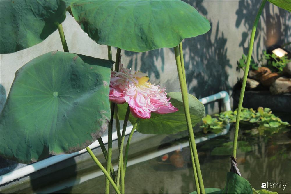 Anh nuôi thêm cá cảnh và trồng thêm sen súng để tạo nên tiểu cảnh sinh động cho khoảng sân thượng.