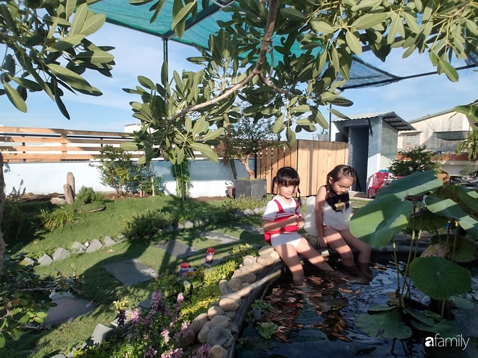 Khoảng sân thượng 40m2 được anh Quốc Bảo dành nhiều tâm huyết để thiết kế tạo nên không gian tuyệt đẹp trên cao giúp hai con có thêm nơi vui chơi, gần gũi với thiên nhiên.