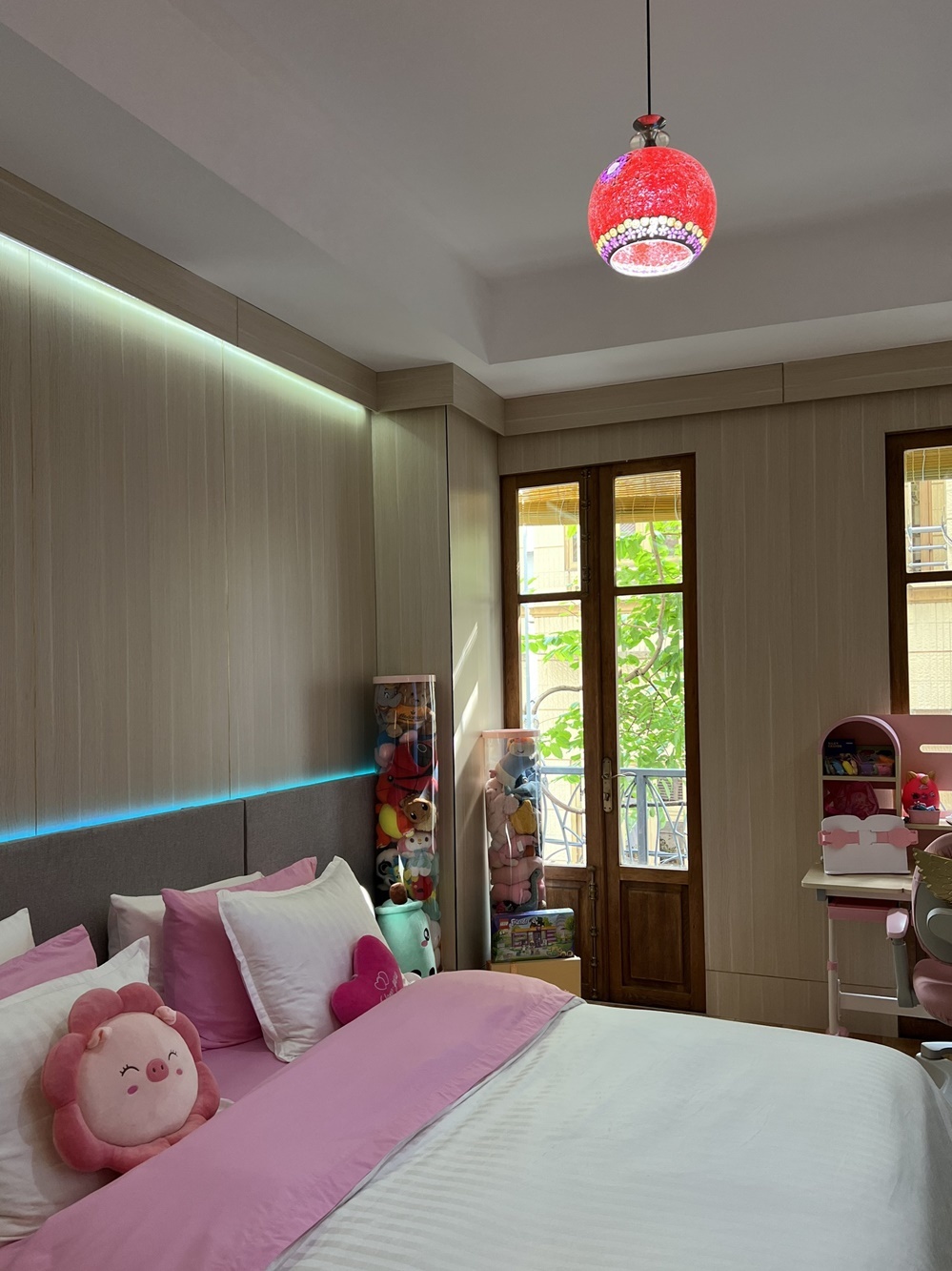 'Bồ Câu ngắm nghía phòng này từ lâu rồi nhưng tôi cứ ậm ừ suốt một năm. Gần đây, bé nhắc lại điều này và bày tỏ muốn có phòng riêng trong ngày đầu tiên của tuổi mới', Đức An nói. Từ đó, anh bắt tay cải tạo phòng theo sở thích của Bồ Câu.
