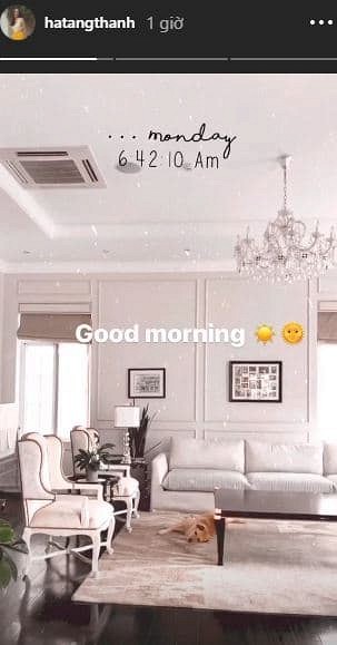 Tăng Thanh Hà chào buổi sáng trong căn hộ sang chảnh.