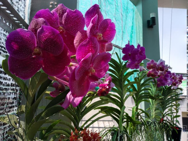 Dàn hoa lan được Trung Dân chăm sóc cẩn thận và nở hoa rực rỡ.