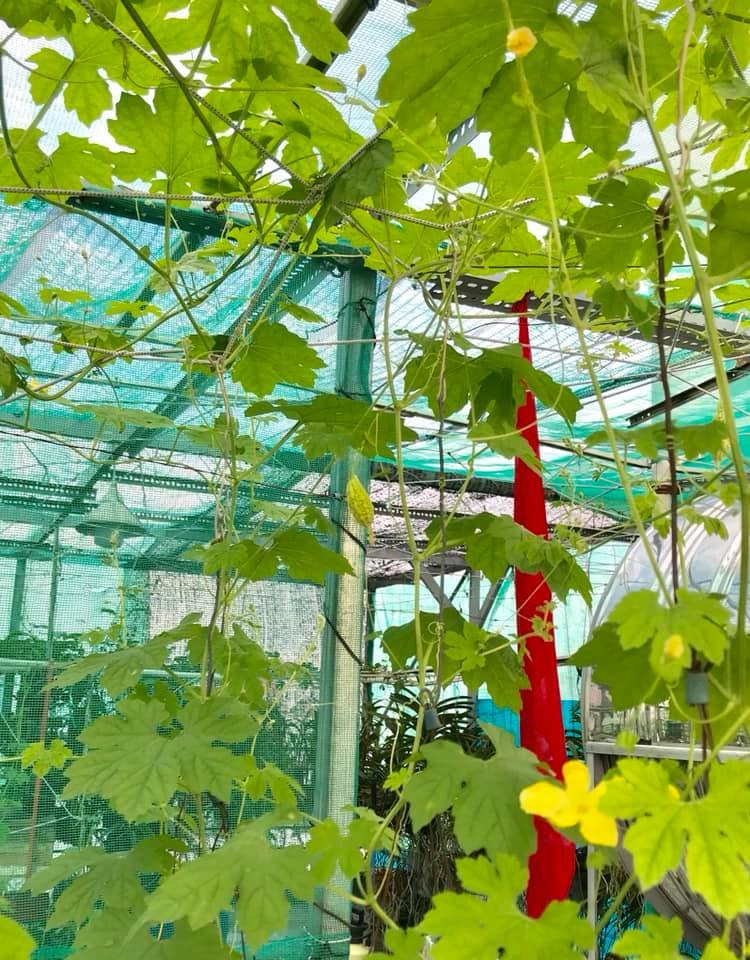 Dàn khổ qua đã cho ra những trái nhỏ.