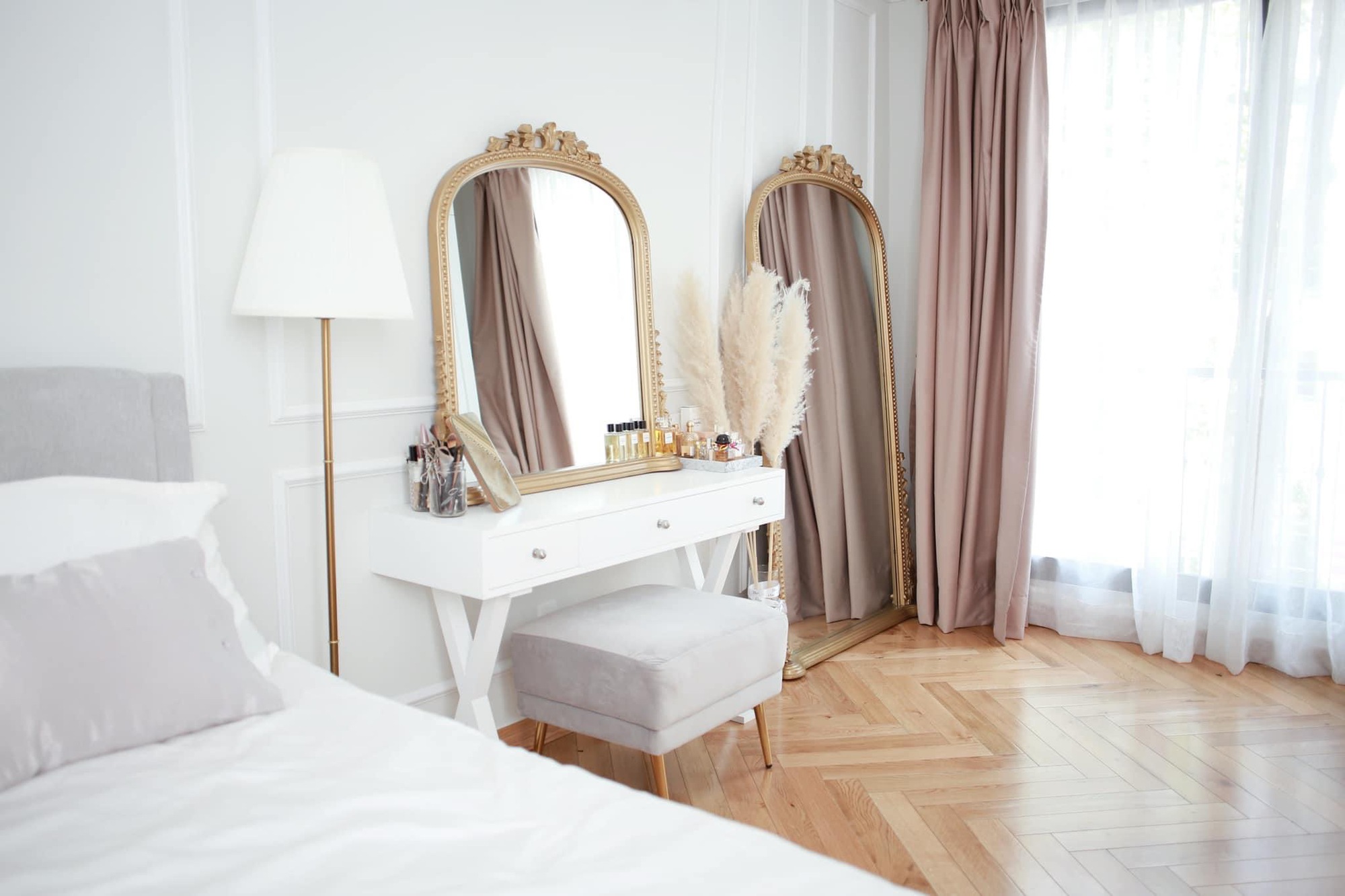 Trong phòng có 2 tấm gương, một lớn một nhỏ. Cả 2 đều được thiết kế theo phong cách vintage, khiến căn phòng vừa cổ điển, vừa hiện đại khá hay ho.