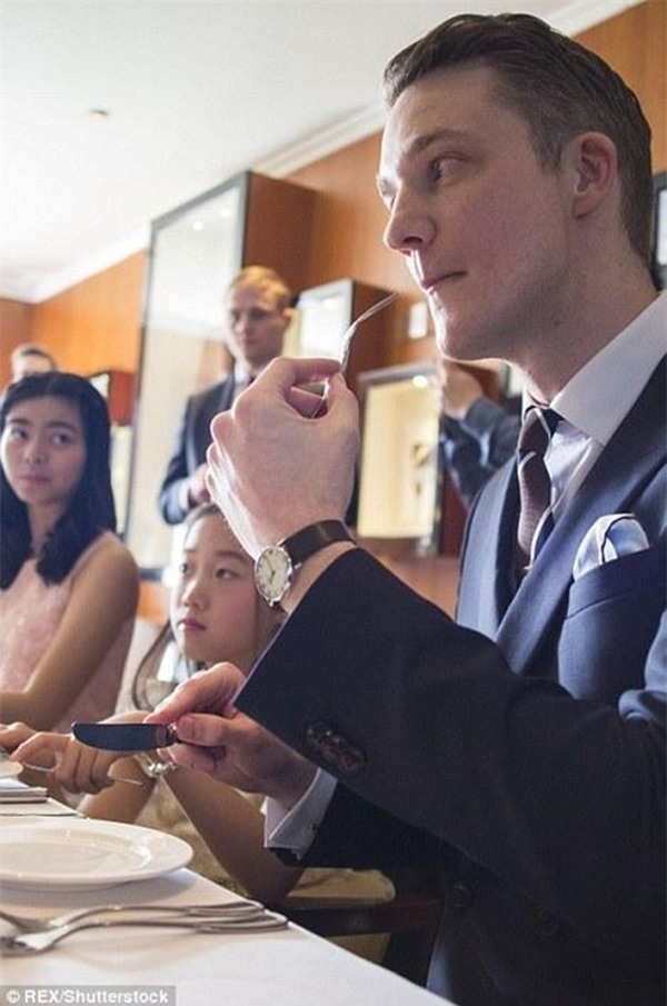 Sau đó, những đứa trẻ sẽ được học cách bước vào cửa, ngồi vào bàn ăn sao cho thật tao nhã và những lễ nghi truyền thống của giới quý tộc Anh, như bắt tay thế nào, chào hỏi ra sao... Tiếp theo, James sẽ đích thân ngồi vào bàn ăn chỉ bảo cặn kẽ cho từng học viên cách cầm dĩa, cách cắt đồ ăn hay cách dùng những vật dụng đặt trên bàn, và tất nhiên không thể thiếu cách đưa đồ ăn lên miệng.