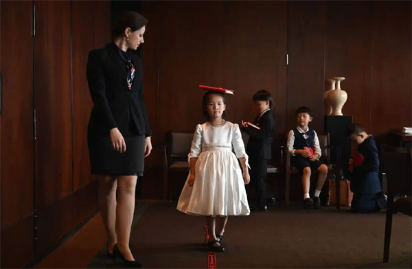 Nhiều cô bé, cậu bé "ngậm thìa vàng" đã học các kỹ năng xã hội, kỹ năng bàn tiệc và cách cư xử từ nhỏ. Việc đội cuốn sách trên đầu để đi đứng thần thái hơn không còn xa lạ với các em.