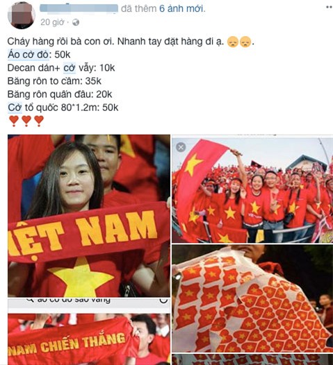 Ngoài áo cờ đỏ, lượng cờ tổ quốc, băng rôn quấn đầu, băng rôn cầm tay, decal dán,... số lượng bán cũng lên tới hàng ngàn.