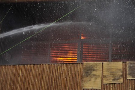 Hầu hết 3 tầng của nhà hàng được làm bằng tre trúc và gỗ nên lửa bắt rất nhanh và cháy to.