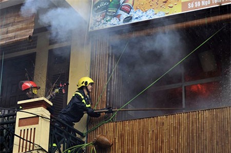 Lửa xuất phát từ tầng 3 nơi có 3 nhân viên nhà hàng đang ngủ. Các anh liền bật