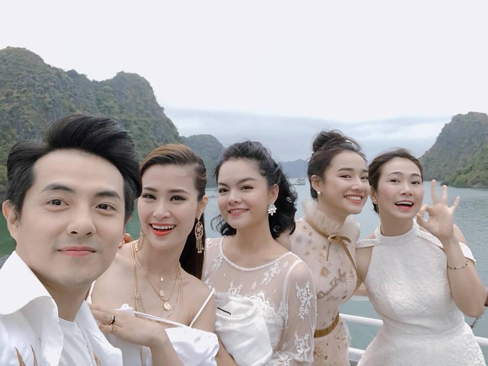 Nhã Phương vui vẻ chụp hình cùng Phạm Quỳnh Anh, Đông Nhi và Ông Cao Thắng.