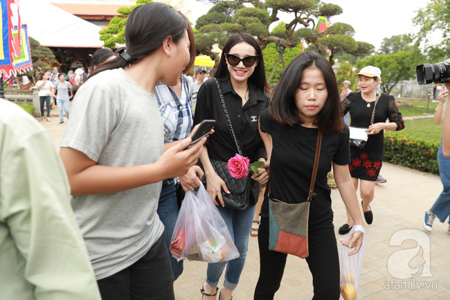 Xuất hiện tại giỗ tổ nghề, Nhã Phương diện áo đen, đi dép bệt cùng với bạn thân Ái Phương dâng hoa và đồ lễ trong ngày trọng đại của các nghệ sĩ.