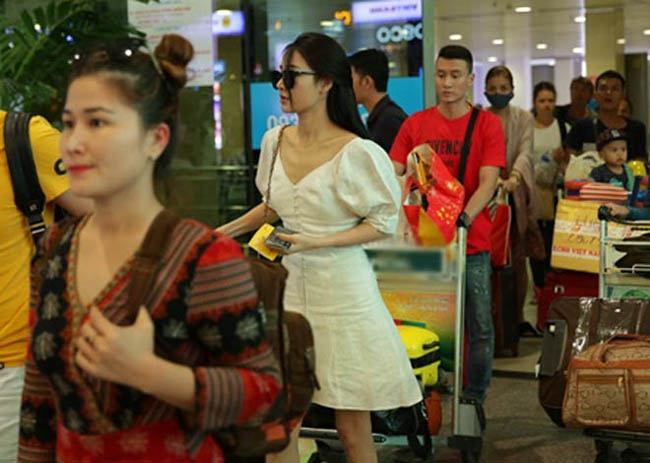 Tại sân bay, khi nhìn thấy có nhiều ống kính hướng về mình, Nhã Phương lặng lẽ cúi đầu, cô ngó lơ mọi thứ xung quanh và di chuyển rất nhanh ra xe riêng.