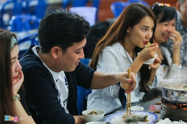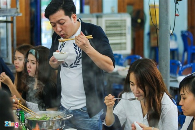 Sau khi kết thúc live show Chàng hề xứ Quảng 2, diễn viên "Tuổi thanh xuân" và người yêu đi ăn khuya với ê-kíp.