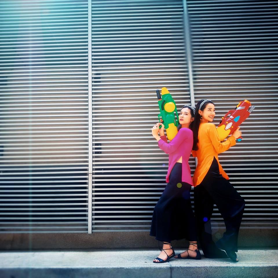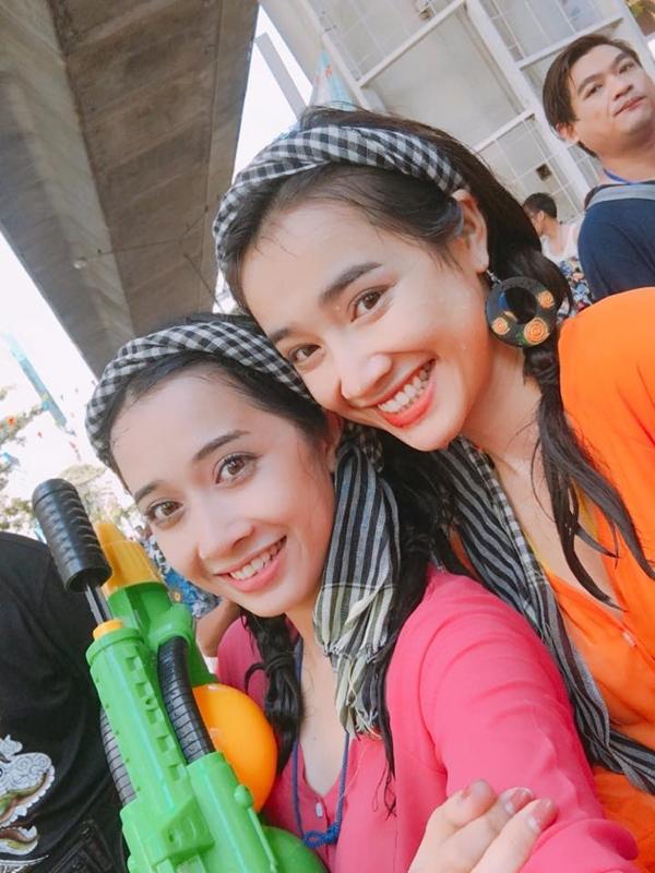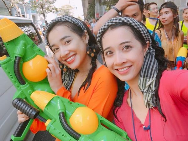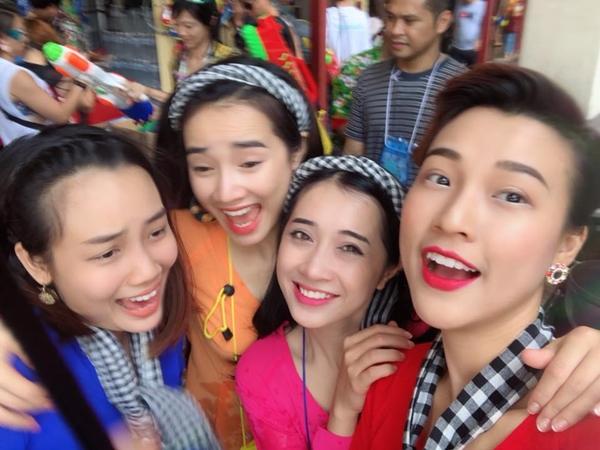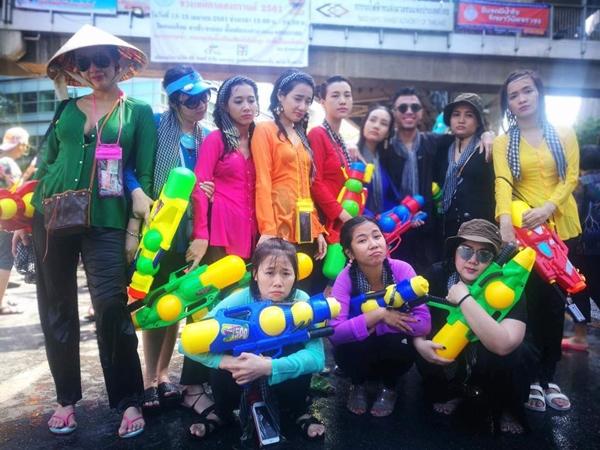 Qua hình ảnh cho thấy, ngôi sao Những thiên thần áo trắng đã "nhập hội" cùng Hoàng Oanh, Ái Phương và em gái, "quậy banh nóc" đường phố xứ sở Chùa Vàng. Team của bạn gái Trường Giang rủ nhau diện áo bà ba, mỗi người 1 màu cực nổi bật và quấn khăn rằn. Em gái của Nhã Phương mới khoe loạt ảnh các ngôi sao làng giải trí Việt toàn thân ướt nhẹp sau cuộc chơi vui nhộn. Người yêu của danh hài đất Quảng để lộ cơ thể gợi cảm ẩn hiện phía sau lớp áo đang ướt vì nước.