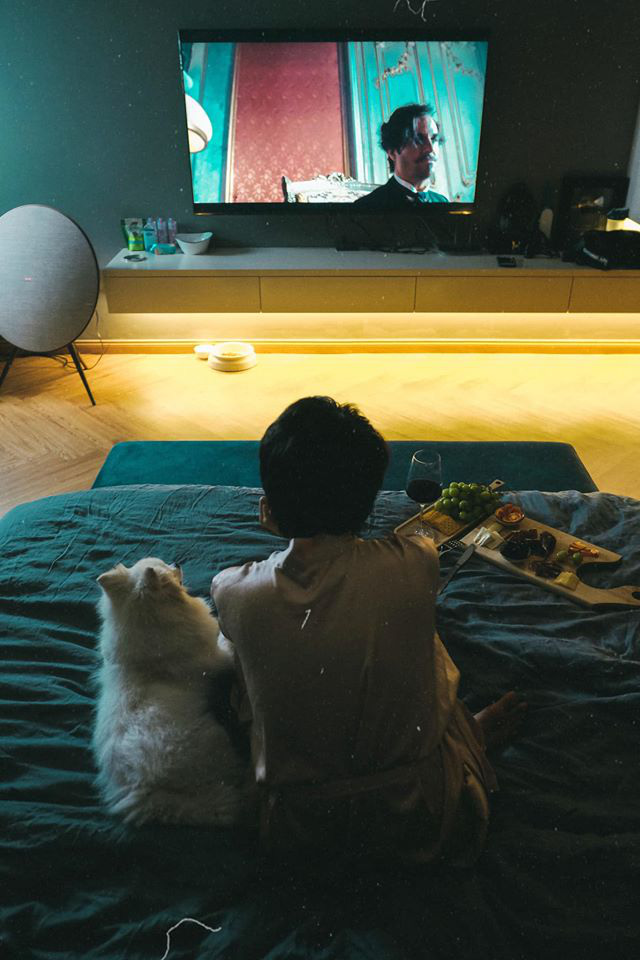 Người đẹp dành thời gian để xem phim cùng những chú thú cưng