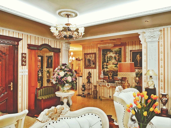 Ngôi nhà được xây dựng, trang trí nội thất theo phong cách hoàng gia với gam màu vàng nổi bật.