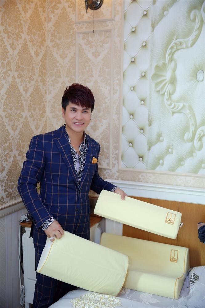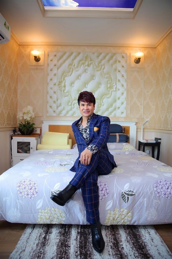 Đây là phòng ngủ Master của Lương Gia Huy. Gọi là Master vì trong phòng ngủ còn phòng chứa trang phục diễn, phòng trang điểm. Anh đặc biệt khoe những chiếc gối ngủ do Ưng Hoàng Phúc tặng.