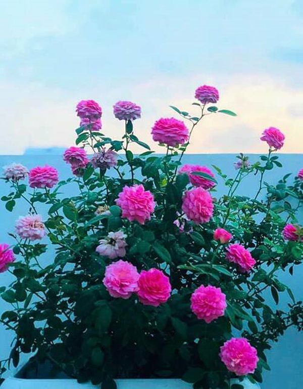 Chị Thảo đặc biệt mê giống hồng leo Pháp vì dáng hoa đẹp, cánh dày, màu hồng sen rực rỡ lúc vừa nở và nhạt dần khi gần tàn. Hương thơm ngọt ngào, tinh tế. Cây ra hoa rất sai, khoảng 5 tuần cây ra một đợt hoa và liên tục bật chồi mới, nhánh mới nên hoa nở cả nửa tháng vẫn chưa hết.