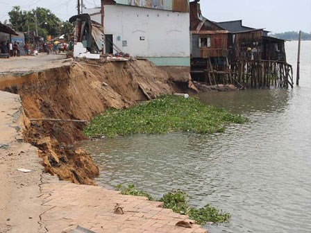 Người dân tháo chạy khi hàng loạt căn nhà sụp xuống sông ở miền Tây