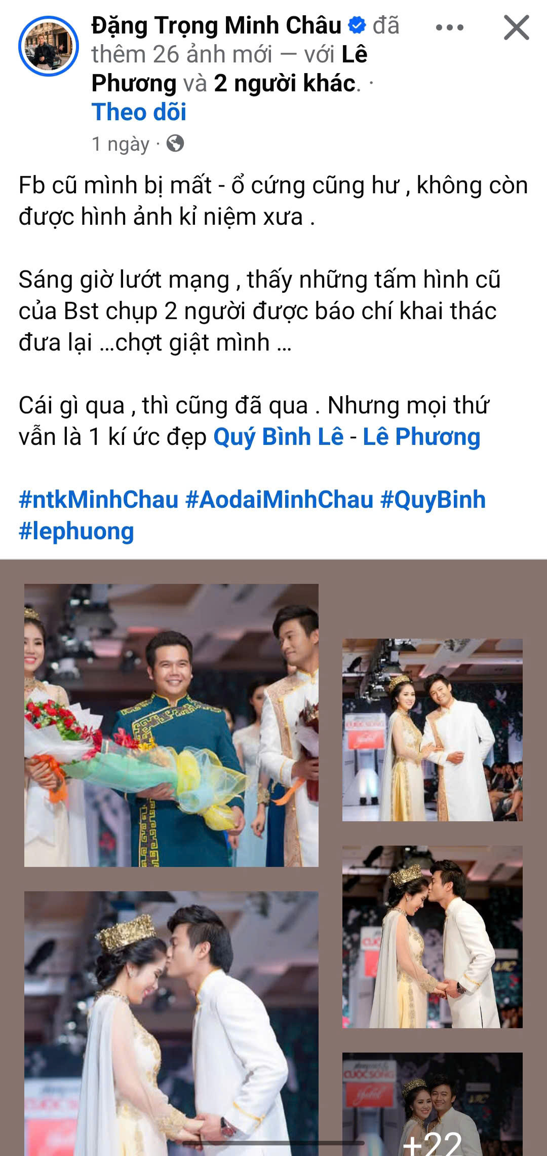 Sau khi đám tang nghệ sĩ Quý Bình được hoàn tất, nhà thiết kế Đặng Trọng Minh Châu đã chia sẻ trên trang cá nhân hàng loạt hình ảnh của Quý Bình và Lê Phương trong một show diễn thời trang của mình.