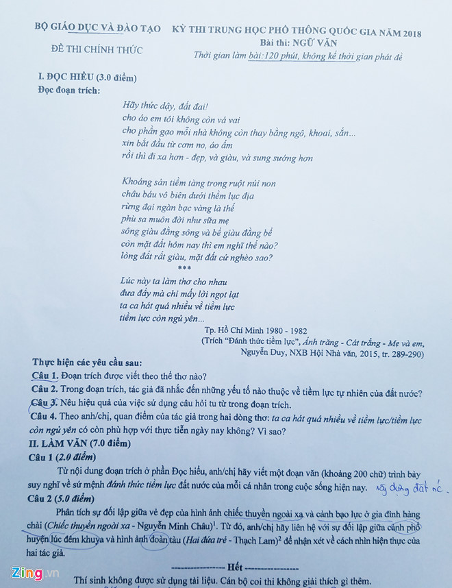 Câu 1 phần làm văn khá thú vị khi gắn với nội dung đọc hiểu ở trên. Nội dung kiến thức câu 2 làm văn không mới nhưng cách đặt vấn đề và học sinh giải quyết vấn đề đó là mới; kết hợp cả kiến thức lớp 11 và 12 như Bộ GD&ĐT đã định hướng trước.