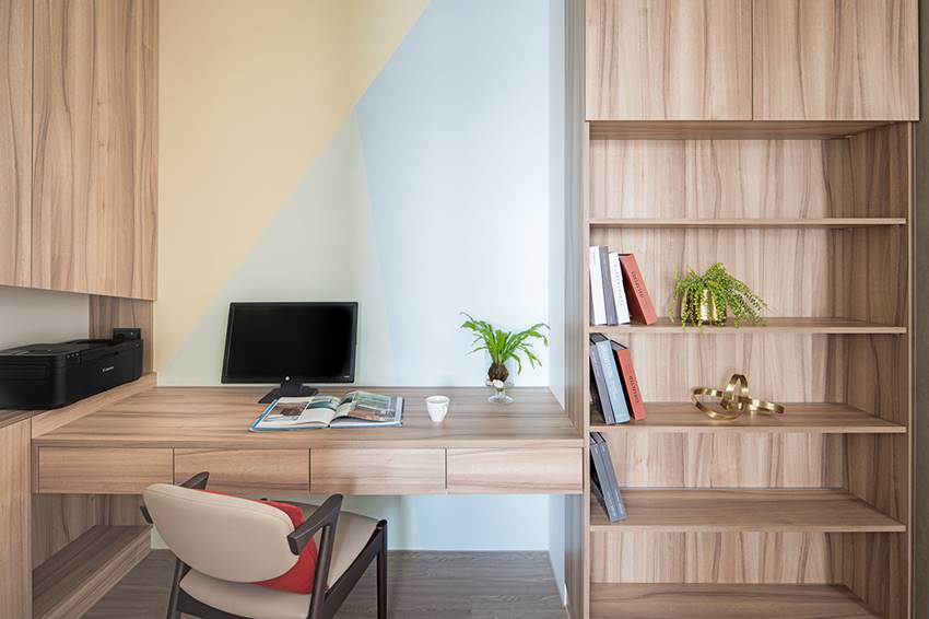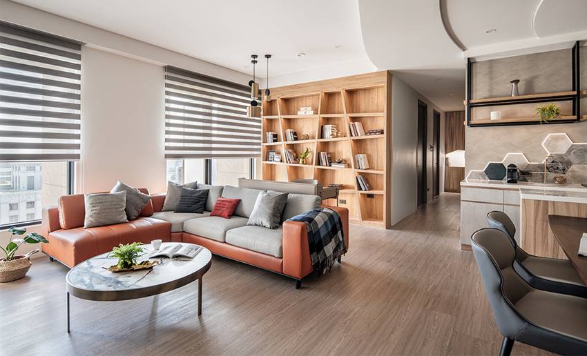 Thay đổi cách trình bày tường phòng khách trước đây bằng cách đặt tivi vào tủ sách gỗ. Một cánh cửa trượt được sử dụng để phân biệt hai cảnh giải trí và đọc sách, làm cho việc tắt TV trở thành một cách để bắt đầu cuộc sống.