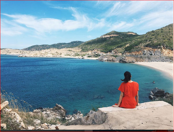 Trước bãi biển xanh mát, khung cảnh đẹp như tranh vẽ này, "ngọc nữ" của làng điện ảnh Việt phải thốt lên: "Biển nhà em đẹp quá".